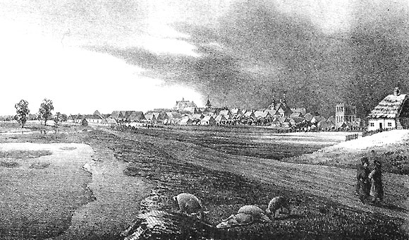 | MIASTECZKO BEŁZ - W DAWNYM OBWODZIE ŻÓLKIEWSKIM, LITOGRAFIA Z 1847 | |